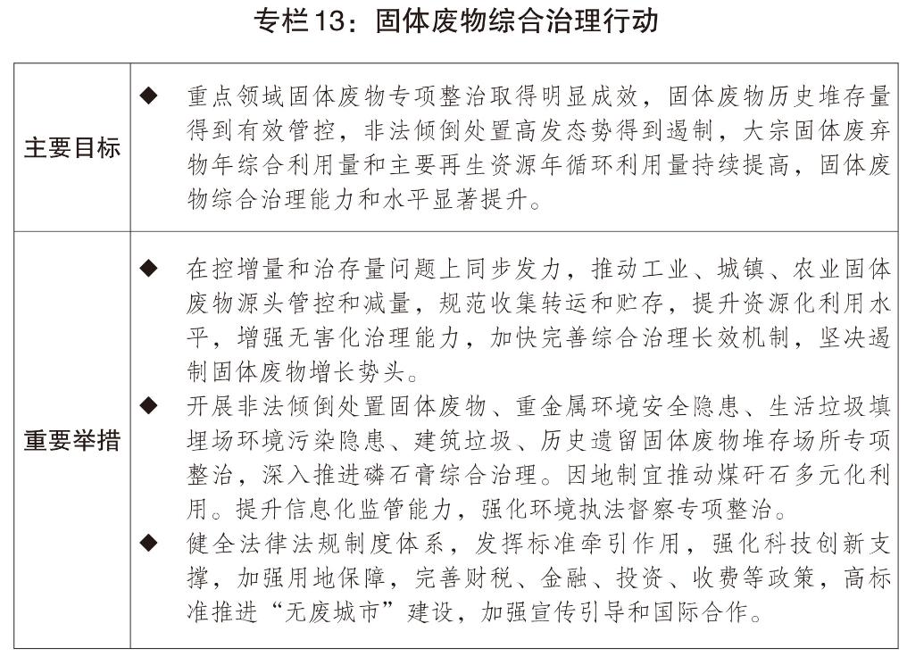二是持续深入推进污染防治攻坚和生态系统优化。深入打好蓝天、碧水、净土保卫战,实施固体废物综合治理行动,强化新污染物治理。开展城镇环境基础设施提质增效行动。全面推进美丽河湖、幸福河湖建设。推进水土流失综合治理。继续支持沿江化工腾退地块土壤污染治理和磷石膏污染综合整治。统筹推进重要生态系统保护和修复重大工程,扎实推进“三北”工程三大标志性战役,实施自然保护地整合优化。深入推进生态产品价值实现。完善多元化生态补偿机制,推动生态环境领域法律法规制修订。持续建设国家生态文明试验区,建设美丽中国先行区。
